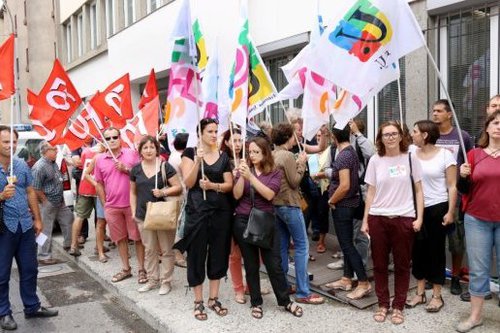 Une quarantaine d’enseignants sous les bannières de la CGT, de FO, de FSU, de Solidaires et du SNES, se sont réunis en fin de matinée sous les fenêtres de l’inspection académique, pour exprimer leur mécontentement.