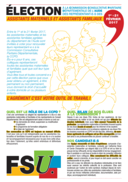 Entre le 1er et le 21 février 2017, ce sont 2000 assistantes maternelles et assistantes familiales agréées du département de l’Aude qui sont invitées à voter pour renouveler leurs représentant.es à la Commission Consultative Paritaire Départementale, la CCPD.